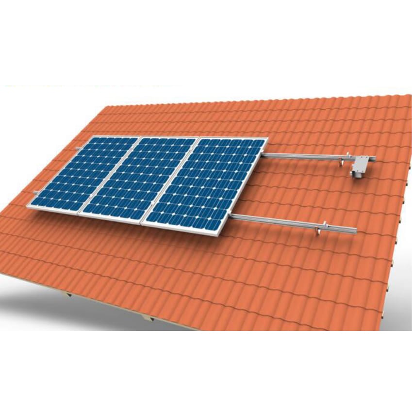 Данный комплект предназначен для монтажа солнечных батарей на плоской наклонной крыше (мягкая черепица), либо металлочерепице в один ряд.