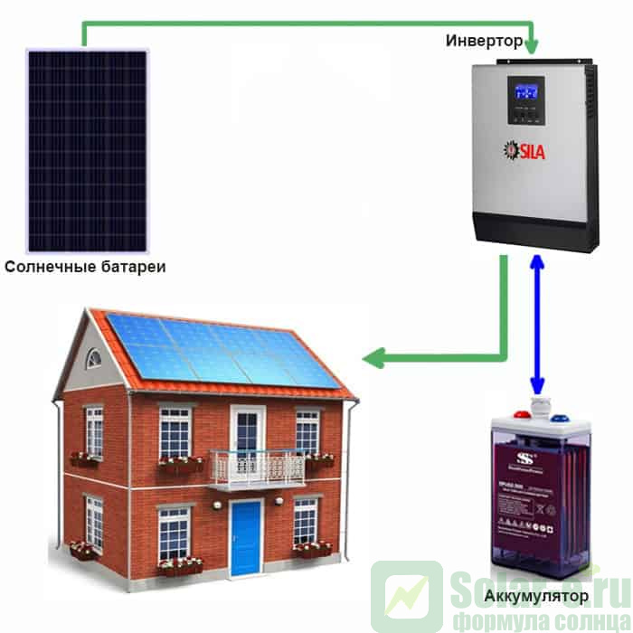 Солнечная электростанция «Дом - 4» подходит для использования как совместно с центральной электросетью ( объект подключен к городской сети ), так и без городской сети ( то есть в условиях полного отсутствия электроэнергии от городской сети ), к примеру небольшие и средние удаленные объекты жилого, хозяйственного или промышленного назначения (дачи, дома, офисы, охотничьи домики, турбазы, бытовки, вахты и т.д.)